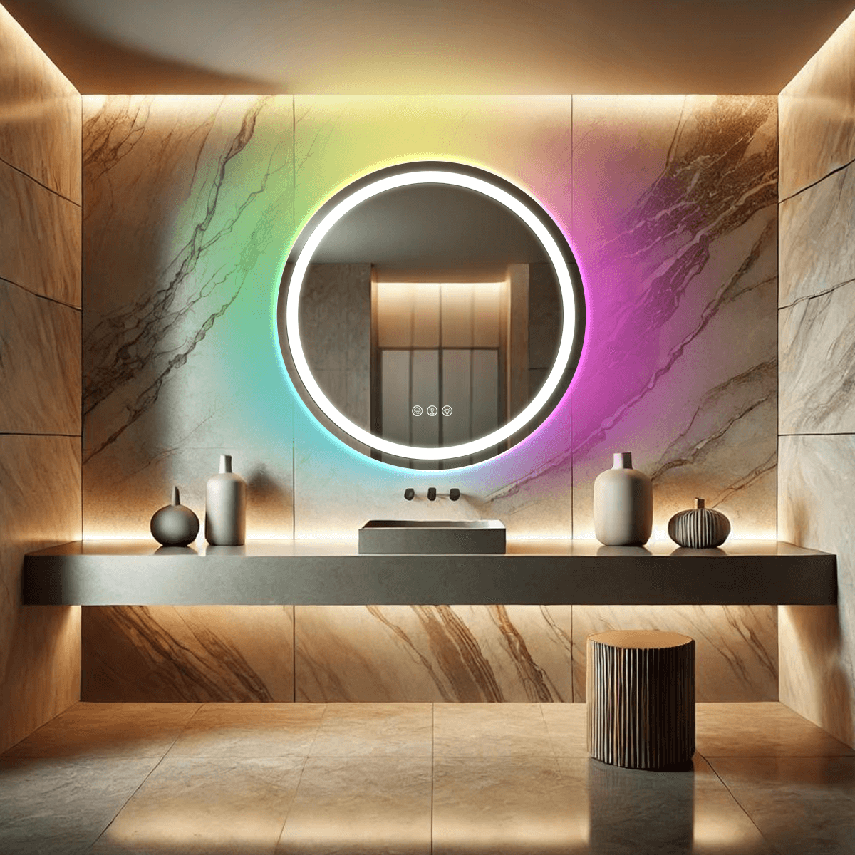 Deze badkamerspiegel biedt meer dan alleen helderheid; hij creëert de perfecte sfeer in jouw badkamer met energiezuinige LED-verlichting. De instelbare lichtkleur varieert van 3000K tot 6500K, zodat je de verlichting kunt afstemmen op jouw voorkeur. Daarnaast biedt de spiegel een elegante selectie van RGB-kleuropties, zoals donkerblauw, lichtblauw, groen, geel, rood, roze en multicolor, voor een kleurrijke, levendige uitstraling. Zowel de directe als indirecte verlichting zijn afzonderlijk instelbaar, wat je volledige controle geeft over de ambiance.